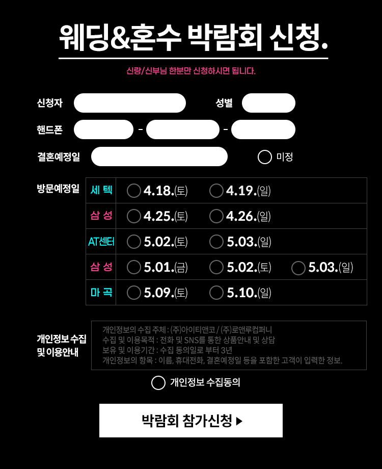 이름, 휴대전화, 결혼예정일 등을 포함한 고객이 입력한 정보